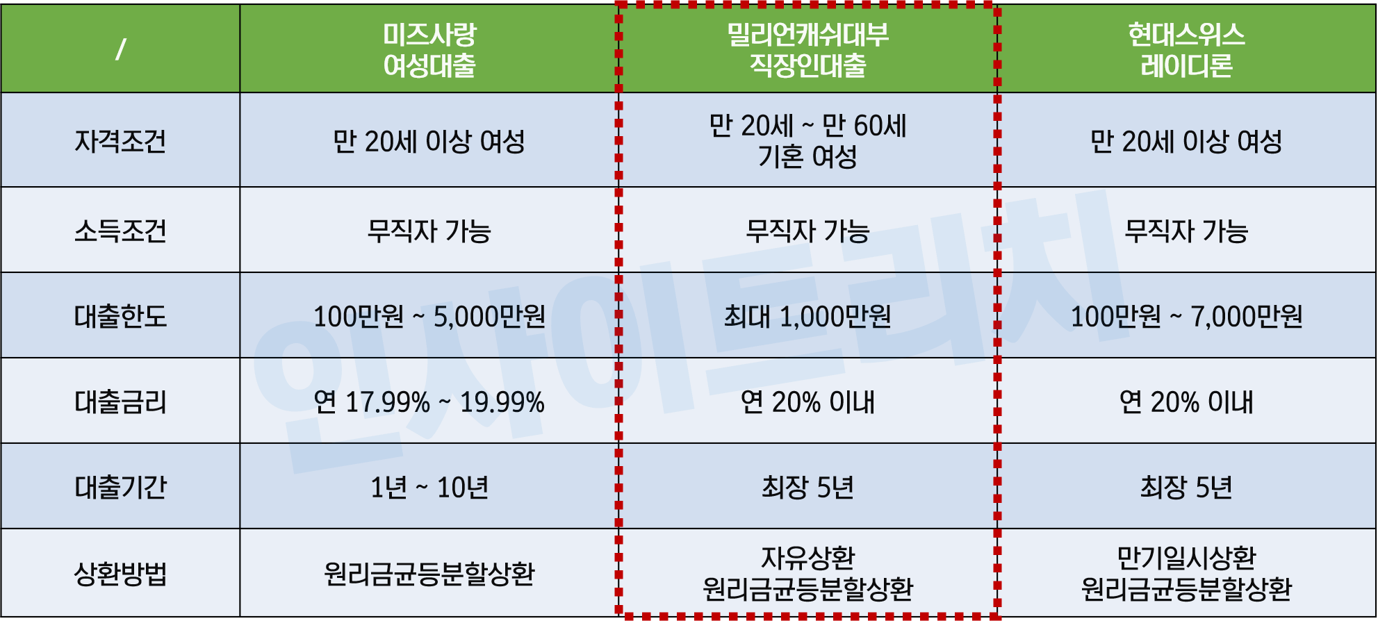 VS 타사 대부대출 조건 비교